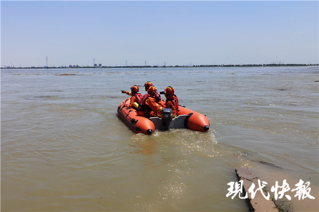 消防指戰(zhàn)員到場(chǎng)后,經(jīng)過現(xiàn)場(chǎng)詢問和觀察得知,由于上游泄洪導(dǎo)致新沂河內(nèi)水位上漲,最深處約4米,現(xiàn)場(chǎng)水流湍急并伴有暗流。消防救援人員迅速搭建好沖鋒舟,并通過望遠(yuǎn)鏡觀察,發(fā)現(xiàn)被困人員位于距離河岸約1公里處的高壓電線塔下,由于水位仍在上漲,若不及時(shí)救援,后果不堪設(shè)想。