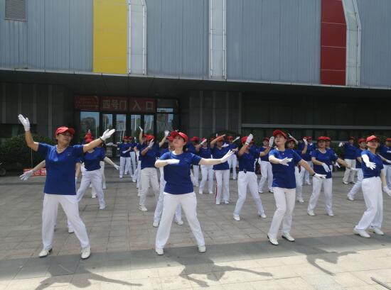 在體育館現(xiàn)場,來自全縣15個鎮(zhèn)區(qū)(街道)的60家廣場舞領(lǐng)隊、骨干以及廣場舞愛好者共100余人豪情滿懷地高唱?dú)g跳《沒有共產(chǎn)黨就沒有新中國》等舞蹈,雖然天氣炎熱,但她們的激情絲毫不減,一遍一遍的反復(fù)練習(xí),確保每一個動作標(biāo)準(zhǔn)到位。在集中演練結(jié)束后,隊長們舉著隊牌向縣電視臺進(jìn)發(fā),參加縣文明辦、公安局、教育局、文廣旅局、電視臺聯(lián)合召開的主題舞蹈活動部署會議??h文明辦孫德松科長、縣公安局法制科花國祥副科長、教育局姚海軍科長、電視臺蔣亞主任,濱??h廣場舞推廣中心全體領(lǐng)導(dǎo)班子參加了會議。濱??h廣場舞推廣中心理事長陳軍向會議作了上半年總結(jié)和下半年工作計劃的匯報講話。
