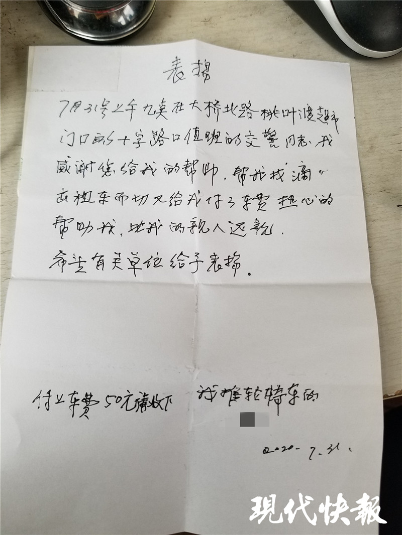 (通訊員 江景軒 徐荷 記者 王瑞)近日,家住南京江北新區(qū)的一位老大爺,專程趕到大橋北路江山路路口,給執(zhí)勤的輔警送來一封親筆寫的感謝信和50元現(xiàn)金,這到底是咋回事?