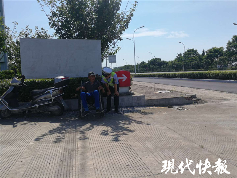 王振華介紹,當天上午他開著警車在海姜大道巡邏的時候,無意中發(fā)現(xiàn)路中間一個老人家坐在輪椅上。“老人看上去很疲憊,不時東張西望。”