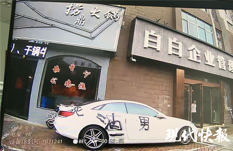 現(xiàn)代快報(bào)記者了解到,7月23日,男子小李將私家車(chē)停在一火鍋店門(mén)口,可當(dāng)他回來(lái)取車(chē)時(shí)發(fā)現(xiàn),車(chē)上竟然被噴了黑油漆,寫(xiě)著“渣男”“劈腿”等字樣。走近一看,車(chē)身上還被多處刮傷。小李趕忙報(bào)了警。蘭陵派出所民警接到報(bào)警后立即趕往現(xiàn)場(chǎng),調(diào)取了街邊的公共視頻看到,劃車(chē)、涂鴉的是一個(gè)年輕女子。