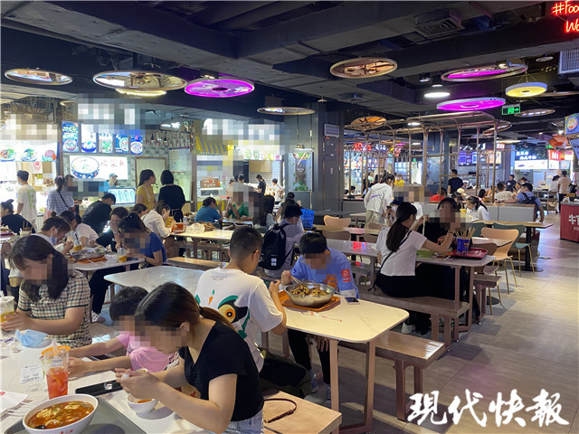 8月11日下午2點(diǎn),盡管已過飯點(diǎn),但萊迪廣場地下一層美食城依舊客滿。麻辣香鍋、鴨血粉絲、涼皮涼面、炒飯蓋飯,這里有各地美食供食客選擇。上一桌客人剛剛離開,保潔員胡大姐走到桌旁,快速收拾起餐盤。這一桌客人沒有留下剩飯剩菜,她收拾起來很方便。“來這邊吃飯的人基本只點(diǎn)一兩樣,剩菜不會(huì)太多。”