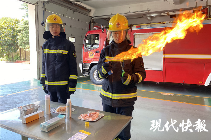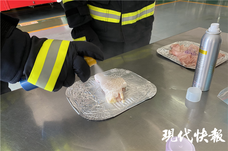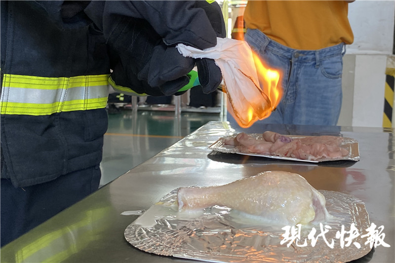 “市面上用的防曬噴霧,成分里面都含有變性乙醇,還有一些丁烷、異丁烷,這些可燃的烷烴類的物質(zhì)。這些都是可燃物,遇到火就會燃燒。雞腿代表的就是人的皮膚,當(dāng)人的皮膚上大量涂抹這種防曬噴霧的時候,遇到明火它就會著火,然后對人的皮膚進行一定的灼燒。”灌云縣長安路消防救援站副站長雷李俊說道。
