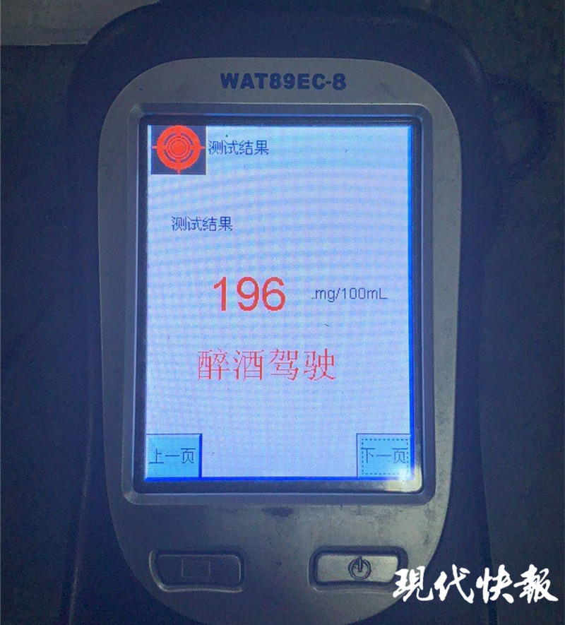 警車上,該駕駛員借口有事突然打開車門再次逃跑,立刻被民警緊緊抓住,并將其送至城北派出所。經(jīng)查,駕駛?cè)诵沼?,酒精呼氣檢測為196mg/100ml,為醉酒駕駛。