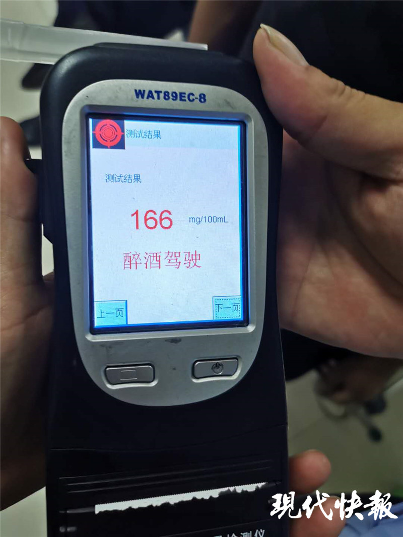 現(xiàn)場人員將其帶上車,準(zhǔn)備送到醫(yī)院抽血檢測,當(dāng)一行人途經(jīng)剛剛向陽路酒駕整治處時,發(fā)現(xiàn)前行一輛摩托車,在路上忽左忽右地行駛著,民警立即下車攔查,經(jīng)了解駕駛?cè)诵詹?,聞見曹某滿身酒氣,經(jīng)現(xiàn)場酒精檢測為166mg/100ml,遂將曹某帶至醫(yī)院抽血檢測。
