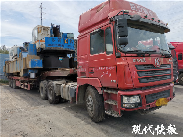 現(xiàn)代快報記者了解到,8月12日凌晨1點多,常州市交通執(zhí)法支隊治超大隊聯(lián)合新北交警大隊在新北區(qū)開展交通違法行為檢查,在龍江北路與東海路路口發(fā)現(xiàn)一輛鹽城牌照的重型半掛車,該車裝載一臺液壓靜力壓樁機主機,有重大超限超載運輸嫌疑。