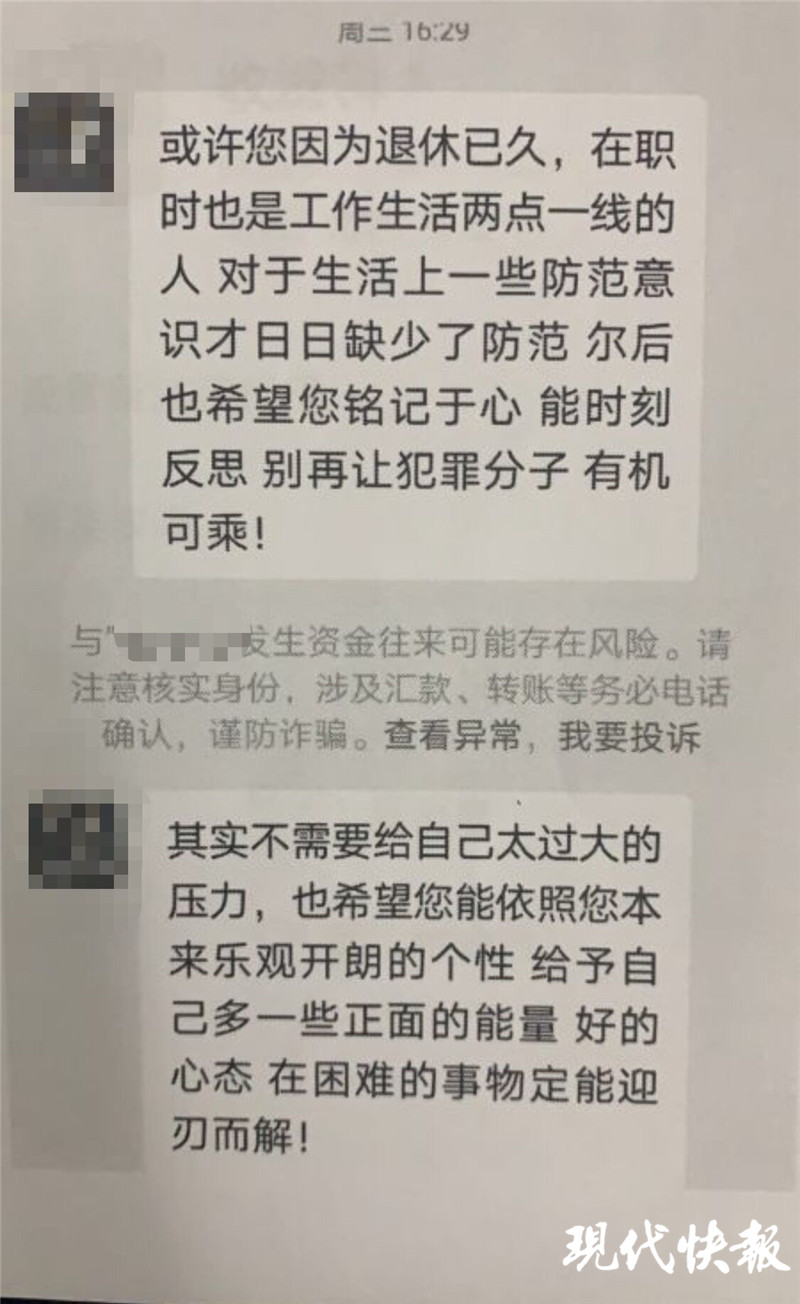 王大媽來到洪武路派出所報(bào)警后,告訴民警騙子曾在作案過程中,像模像樣地勸她不要因“涉嫌犯罪”而慌張,還提醒她要提高防范意識(shí)。