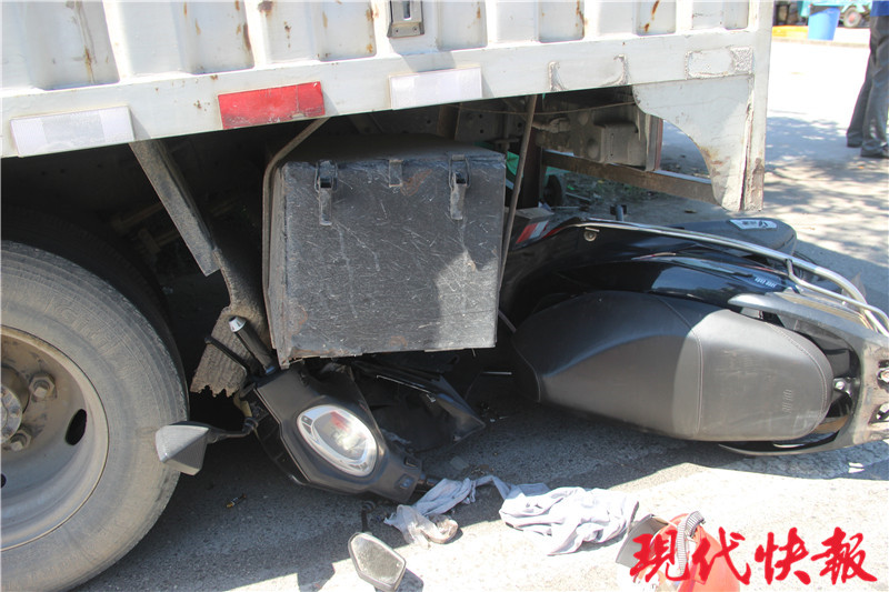 △沈某被連人帶車被撞進貨車底下 警方供圖