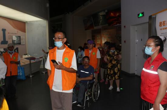 上午9點左右,殘疾朋友們陸續(xù)進(jìn)入博物館,義工為大家分發(fā)著口罩,為他們登記名字、測量體溫,接著引導(dǎo)到集合區(qū)域后,戴小勇主席與江醫(yī)生分別跟大家交待了活動流程與注意事項,之后聯(lián)系了博物館特別為我們殘障人士安排的金牌講解員李女士前來引領(lǐng)我們殘友隊伍進(jìn)館。這次活動博物館方面給所有殘友家人與志愿者全部免去參觀門票費(fèi),在此也代表所有隊員們向館方表示感謝。