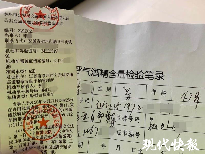 經(jīng)了解,李某是安徽人,在高港區(qū)做再生資源回收生意,當(dāng)天中午在某廠區(qū)收完貨后感覺又渴又累,便從廠區(qū)食堂順手拿了瓶啤酒當(dāng)“飲料”解渴,邊開車邊喝。車開出兩公里后,看到田河大橋橋口有交警設(shè)卡盤查,心里不由咯噔一下,猛然想起自己喝過酒,駕駛證還沒帶身上,可是悔之晚矣。