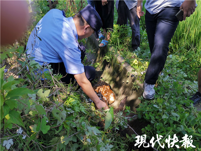 經(jīng)農(nóng)林部門的專業(yè)人員確認(rèn),這是一頭梅花鹿,屬于國家一級保護(hù)動物,但不知從何而來。目前,這頭鹿已被送往南通森林野生動物園。