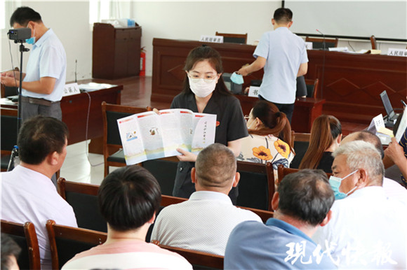 該案的案發(fā)地為長(zhǎng)江如皋段北汊附近水域,即長(zhǎng)江如皋段刀鱭國(guó)家級(jí)水產(chǎn)種質(zhì)資源保護(hù)區(qū),且父子倆均為長(zhǎng)江邊的村民,為了起到現(xiàn)場(chǎng)警示教育的效果,此次開(kāi)庭地點(diǎn)選擇在距離案發(fā)地最近的如皋市長(zhǎng)江鎮(zhèn)長(zhǎng)青社區(qū)居委會(huì)。當(dāng)天,部分人大代表、政協(xié)委員、公安、漁政執(zhí)法人員、當(dāng)?shù)貪O民和沿江村民代表近100人旁聽(tīng)了庭審。