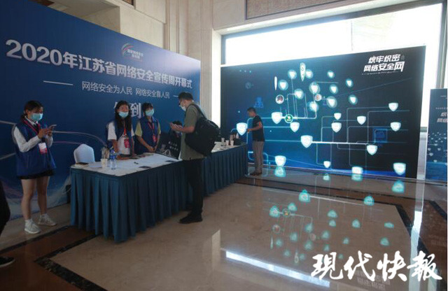 (記者 徐紅艷 徐岑 /文 顧煒 劉暢 /攝)掃碼大屏簽到,頭像秒變網(wǎng)絡(luò)防護(hù)盾牌,助力網(wǎng)絡(luò)安全網(wǎng)織牢織密 !9月14日,2020年江蘇省網(wǎng)絡(luò)安全宣傳周將在淮安啟動。13日下午,現(xiàn)代快報記者提前探訪會場發(fā)現(xiàn),現(xiàn)場科技感十足,互動性也特別強。嘉賓們只要拿出手機掃描二維碼,就能在大屏上完成簽到,助力網(wǎng)絡(luò)安全防護(hù)網(wǎng)織牢織密。