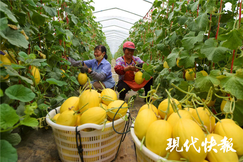 △村民在果園收瓜