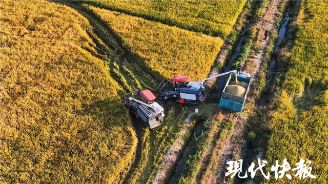 金色稻田機(jī)聲??!句容萬畝良田開啟秋收大幕