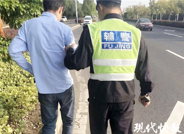 當(dāng)日下午4點(diǎn),鎮(zhèn)江新區(qū)交警大隊(duì)民警邵明才與輔警汪志民在轄區(qū)金港大道與通港路路口執(zhí)勤時(shí),一輛白色小型汽車突然停在路邊,從車上下來(lái)一男子,一手捂住腹部,一手捂住頭部,腳步踉蹌向執(zhí)勤點(diǎn)走去,輔警汪志民發(fā)現(xiàn)情況后趕緊迎上去扶住男子,并詢問(wèn)發(fā)生了什么事。