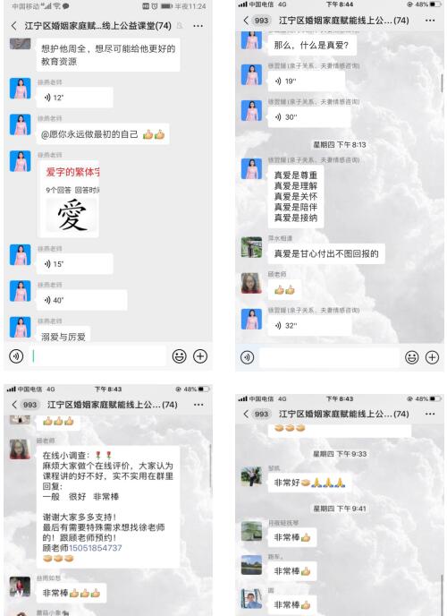 讓愛陪伴成長,共促家庭和諧。此次線上課程贏得了大家的一致好評,課堂內(nèi)容通俗易懂并實用,讓家長們更加明白與孩子們的相處之道,讓社會擁有更多健康美滿的幸福家庭!