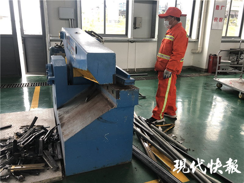 23日,在溧水區(qū)居民生活物品分揀(貯存)中心,工人正在對各類可回收物進(jìn)行分揀處理。只見工人將長條的廢舊鋼管切成小段,并和易拉罐等其他金屬可回收物,放入一旁的壓縮機中。不到10分鐘,各類金屬都被壓成一塊立方體。而大件垃圾也在此進(jìn)行拆解分揀、分類貯存、分類處置。