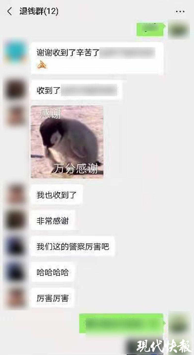 “沒想到這錢還能找回來,對我們來說真的是意外之喜,非常感謝警察同志!”失而復(fù)得的受害人激動(dòng)不已,紛紛在微信群內(nèi)向民警表示感謝。