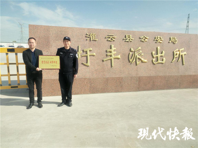 案件偵破后,連云港某快遞公司將一塊印有“雷霆出擊 破案神速”的牌匾專門送至圩豐派出所,表示感謝。