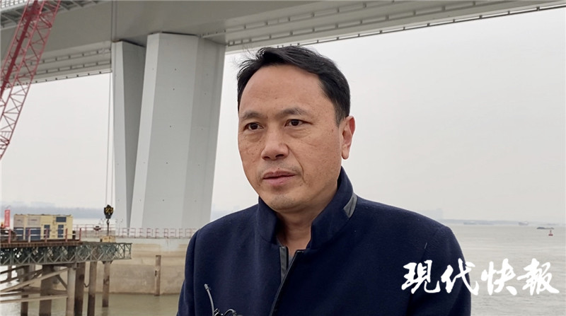 △南京市公共工程建設(shè)中心計(jì)劃處處長王超介紹南京長江五橋施工建設(shè)情況