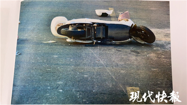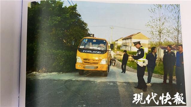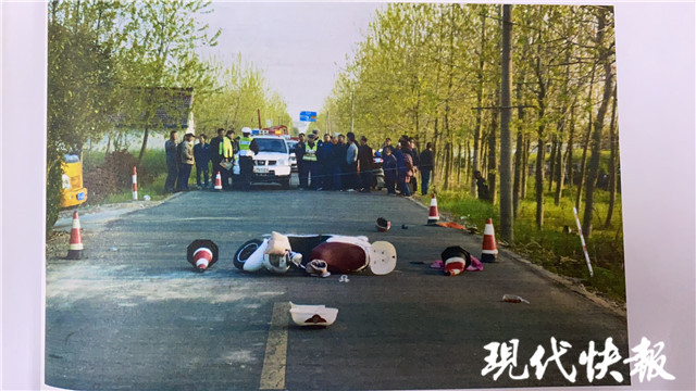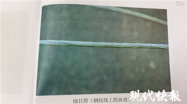 在警方拍攝的現(xiàn)場(chǎng)圖片中,現(xiàn)代快報(bào)記者看到,這根鋼絞線大約有手指粗細(xì),泛著銀白色,懸空在路面上,不是很明顯。
