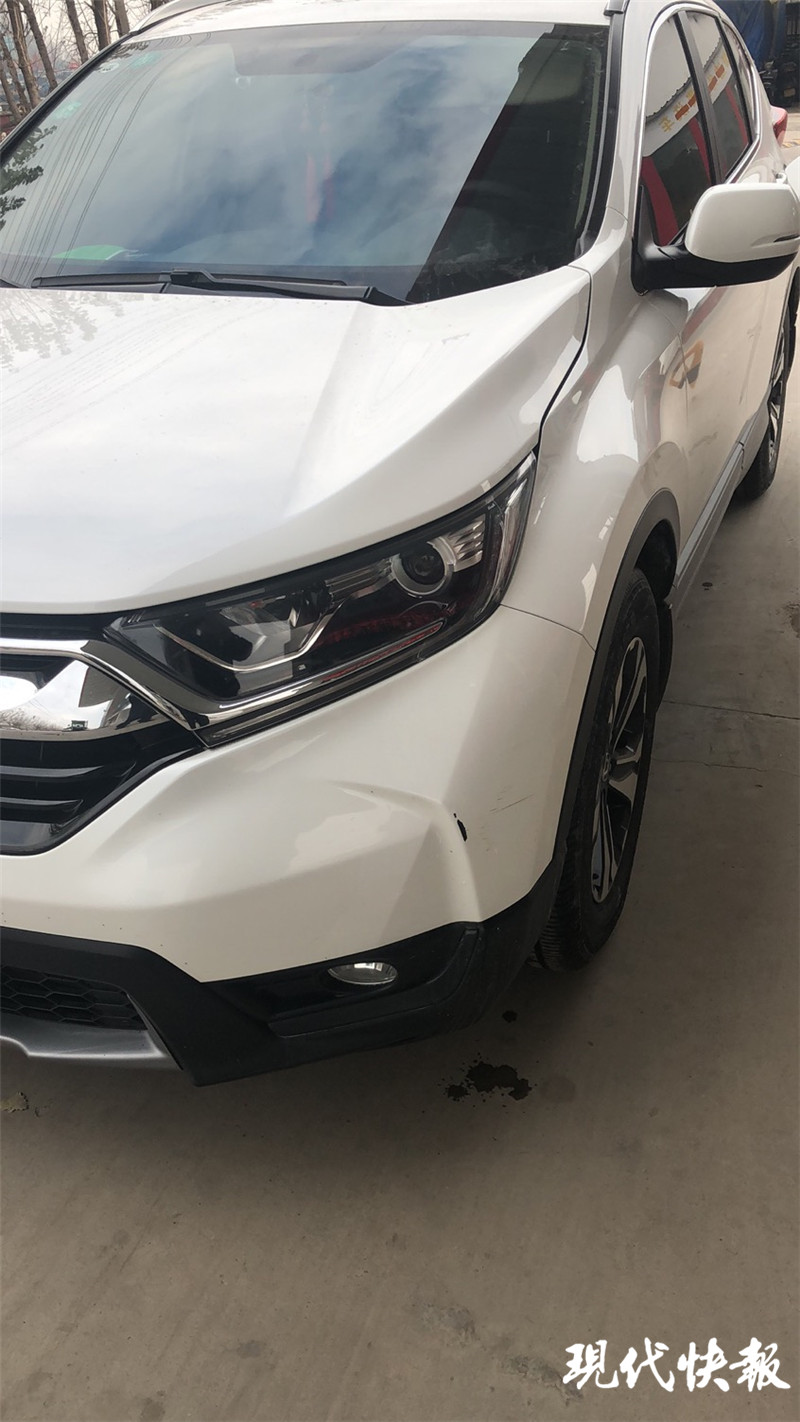 高某原本以為,顏色相近的牙膏和車漆可以“魚目混珠”,第二天便開車載著老板去張家港談生意了。沒想到他的這個(gè)“伎倆”,很快就被對(duì)方車主識(shí)破。12月21日下午1時(shí)許,白車車主,34歲的郭先生想開車離開酒店。啟動(dòng)車子之前,他習(xí)慣性地繞車走了一圈觀察情況,結(jié)果發(fā)現(xiàn)車頭左前方顏色不太對(duì)。