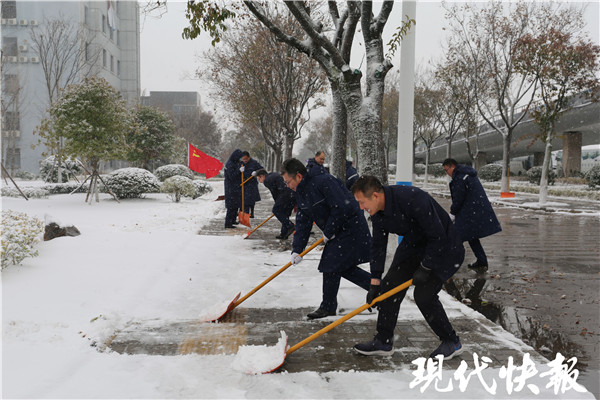 為確保場(chǎng)區(qū)道路暢通,徐州、連云港機(jī)場(chǎng)組織機(jī)關(guān)工作人員手拿鐵鍬、推雪板和掃把等工具,頂著寒風(fēng)、躬著身子,對(duì)外場(chǎng)周圍路段鏟雪。在黨員突擊隊(duì)旗幟的照耀下,全體除冰雪隊(duì)員形成一個(gè)充滿凝聚力和戰(zhàn)斗力的堡壘。