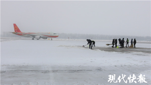 江蘇南京等多地機(jī)場(chǎng)除雪忙 旅客乘機(jī)要注意