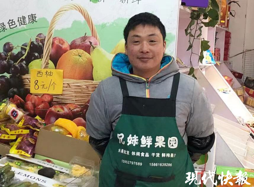 經(jīng)過多方尋找,大家最終找到了這個好心的藍衣小伙,他叫張艷召,是一名“85后”,現(xiàn)在和妹妹一起經(jīng)營著一家水果店。