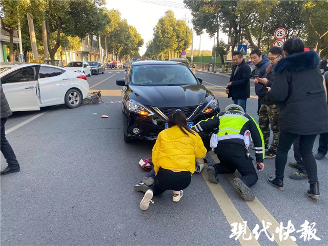 去年12月15日早晨7點(diǎn)50分,在常州經(jīng)開區(qū)橫林鎮(zhèn)順通路路口,一名騎自行車的老太太與路側(cè)臨時(shí)停車泊位內(nèi)一輛正在倒車的白色現(xiàn)代轎車發(fā)生剮蹭,老太太倒在機(jī)動(dòng)車道內(nèi),隨即被同方向駛來的黑色尼桑轎車卷入車底。駕駛警車巡邏至此的經(jīng)開區(qū)公安分局橫林交警中隊(duì)中隊(duì)長(zhǎng)孫旭看見這一情況招呼道:“大家快來幫忙救人!”聽到喊聲,過往車輛駕駛員和市民紛紛伸出援手,“一二三!一二三!”眾人合力,將轎車緩緩抬起。緊接著,有人將被軋的老太太從車底拉出。整個(gè)救援過程,前后不過十秒鐘。隨后,受傷老太太被趕來的救護(hù)車送至醫(yī)院搶救后轉(zhuǎn)危為安。
