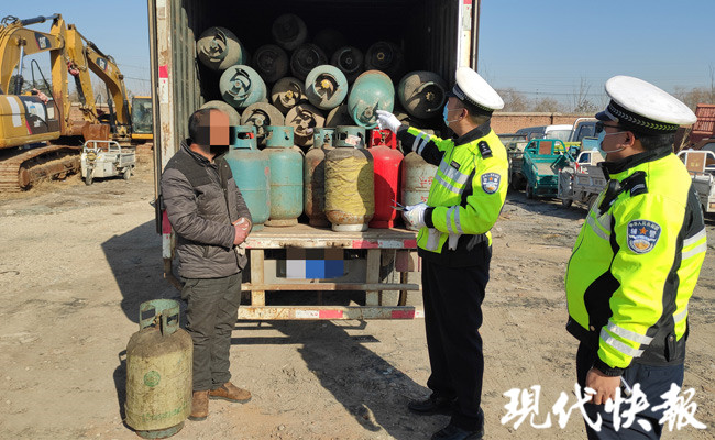 廂式貨車拉載100多個老舊煤氣罐 交警:打開氣閥呲呲作響