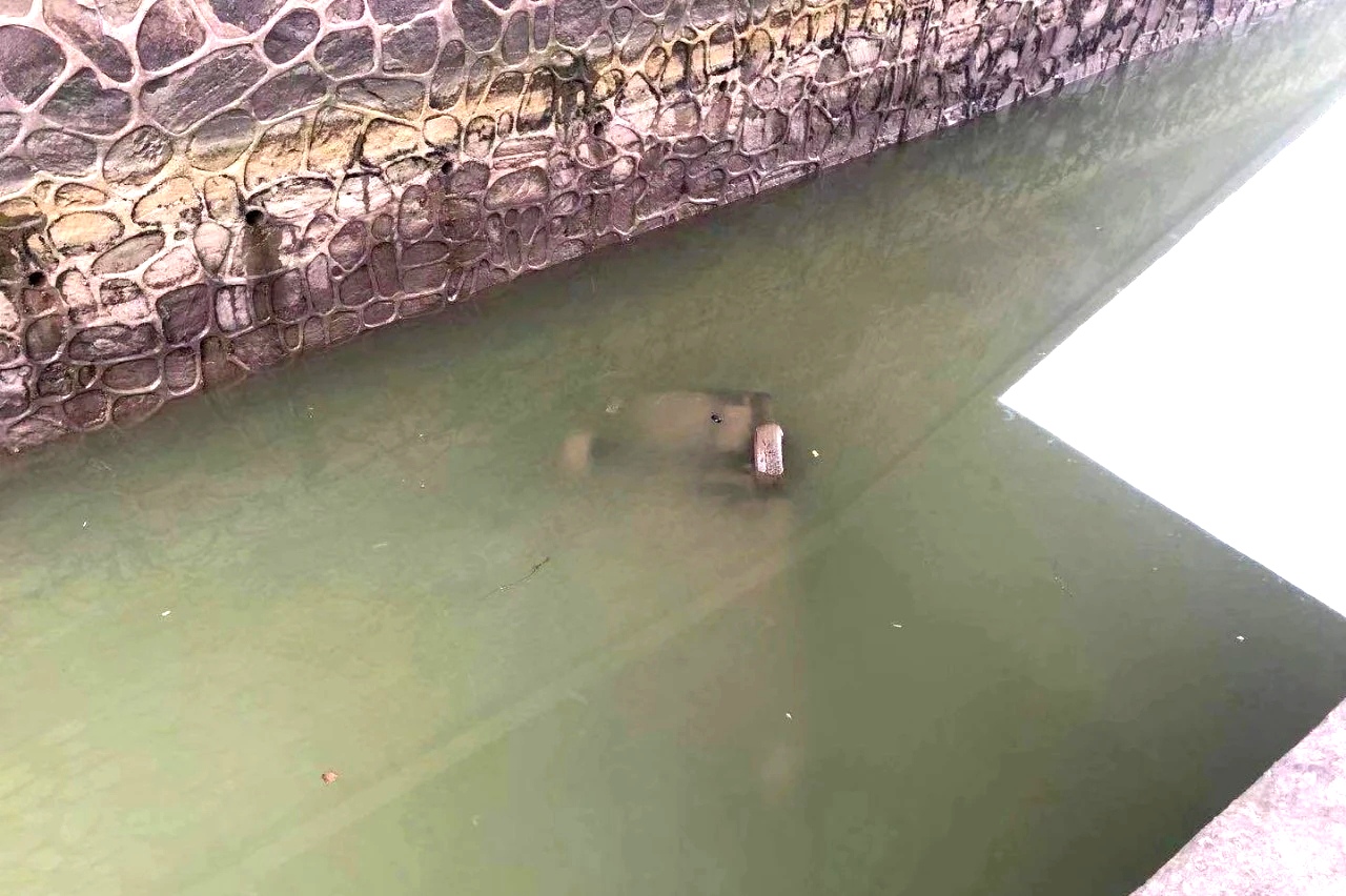 徐先生告訴現(xiàn)代快報(bào)記者,他是維修閘塘工程隊(duì)的一名工人,21日一大早,他正在做工程維修的準(zhǔn)備工作,水底的一幕卻讓他驚出一身冷汗。“當(dāng)時(shí)我以為有人在車內(nèi),假如是沖到河里的就麻煩了。”徐先生趕緊報(bào)了警。