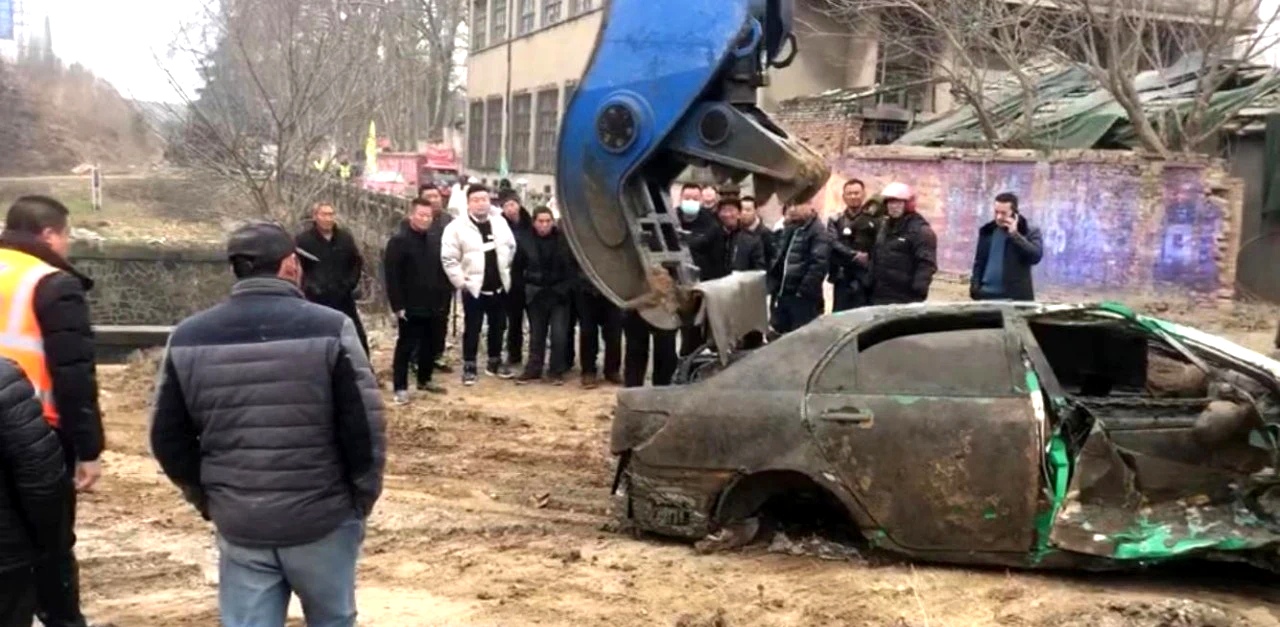 記者了解到,事發(fā)地點(diǎn)位于朱碼節(jié)制閘西側(cè),警方到場(chǎng)后立即拉起了警戒線,不一會(huì)就圍滿了人。民警告訴記者,警方到達(dá)現(xiàn)場(chǎng)后看到河中央有一個(gè)轎車車輪,車輪下一輛轎車的輪廓清晰可見(jiàn)。事不宜遲,民警立即聯(lián)系相關(guān)人員,找來(lái)水泵抽水,同時(shí)聯(lián)系水上搜救人員到場(chǎng)配合。三小時(shí)后,閘塘的水逐漸減少,轎車車身露了出來(lái)。這時(shí),民警又調(diào)來(lái)挖機(jī)輔助配合,將轎車打撈上岸,發(fā)現(xiàn)車?yán)餂](méi)有人。“該車車型是比亞迪出租車,外觀也經(jīng)過(guò)噴漆改裝。”民警說(shuō),落水轎車處于約六米深的水域里,撈上岸后發(fā)現(xiàn)轎車已銹跡斑斑,估計(jì)落水時(shí)間至少在兩年以上。