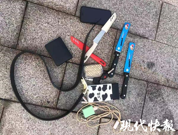 △民警從男子身上搜出4把水果刀