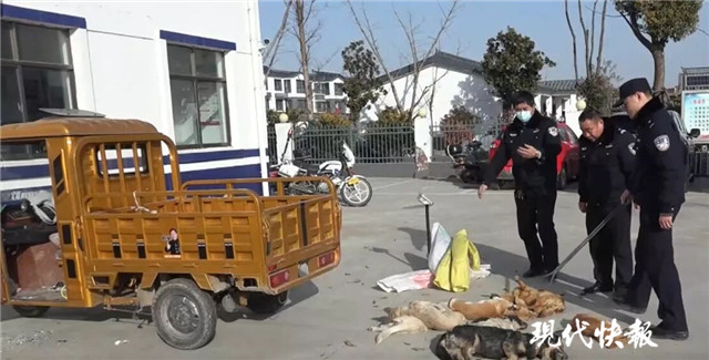隨后,東胡集派出所民警在趕往韓女士家里的途中,發(fā)現(xiàn)一輛電動三輪車非??梢桑谑钱攬鰧⒋塑囕v控制。“當時是晩上11點多,本來有電動三輪車就十分可疑了,讓他接受檢查還拒不配合。”民警告訴記者,王某試圖轉(zhuǎn)動車把手,加速沖卡避免盤查。民警只能果斷采取措施,用警用甩棍砸破車窗,將王某控制起來。果然,民警在車內(nèi)發(fā)現(xiàn)了五條土狗。