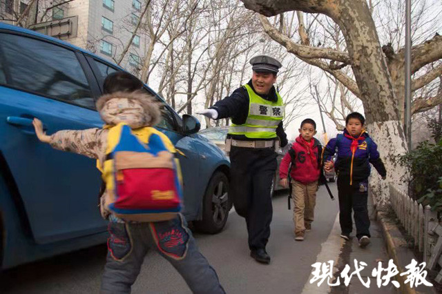 南京地鐵三、四號(hào)線開(kāi)通后,學(xué)校周邊交通路況發(fā)生了改變,車(chē)輛無(wú)法靠邊??浚瑢O巍總是搶在紅綠燈前讓接送孩子的車(chē)輛提前停車(chē),自己小跑幾十米完成孩子的“交接”護(hù)送。