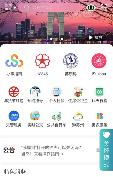 蘇州市政府副秘書長、市大數(shù)據(jù)管理局局長顧建明介紹了關(guān)懷模式。他說,從今天起,在“蘇周到”的首頁,只需點(diǎn)擊浮窗就可一鍵進(jìn)入“關(guān)懷模式”,不僅字體更大,圖標(biāo)更為醒目,還將蘇康碼、蘇州養(yǎng)老、游在蘇州、蘇州園林、社保查詢、醫(yī)院掛號(hào)等老年人常用服務(wù)和功能放在首頁。