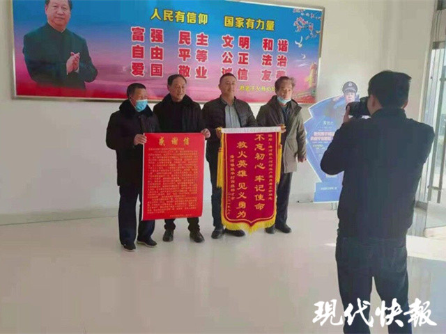 2月5日下午,楊財(cái)余將一面錦旗和感謝信送到了唐正宇所在的村部。