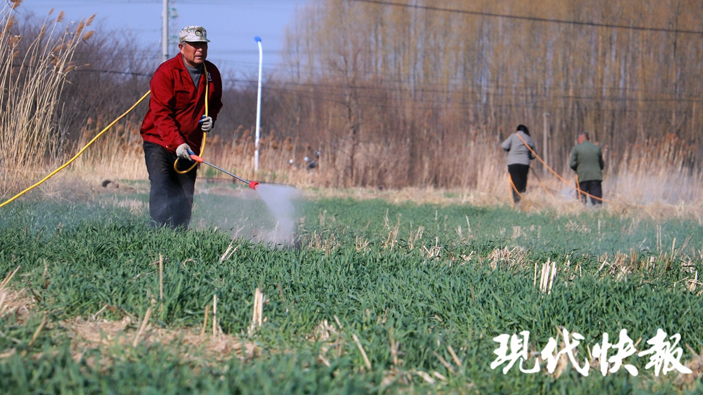 句容市邊城綠農(nóng)糧食種植土地股份專業(yè)合作社社長陳軍民告訴記者,在春節(jié)之前,合作社已經(jīng)把促進(jìn)生長的化肥撒下去了,現(xiàn)在過完年之后,正好天氣回暖,“我們抓緊時(shí)間,把田里的草除一下,要不然時(shí)間長了草就難以控制住了。”