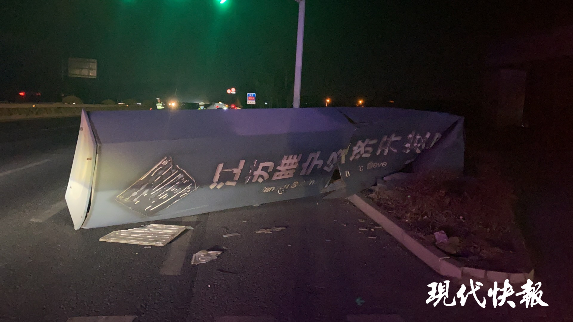 △被撞倒的大標(biāo)識(shí)牌
