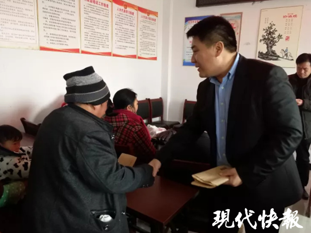 △ 曹電成利用春節(jié)慰問家鄉(xiāng)的困難戶