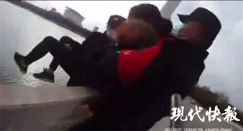 隨后,顧克海悄聲上前,趁女子不備,一把抓住女子衣服將其往回拉,女子想奮力掙脫,此時一名隊員也趕到了。顧克海從身后緊緊抱住女子,兩人經(jīng)過一番努力,以最快速度成功將女子從護欄外抱了回來,及時阻止了一場悲劇的發(fā)生。