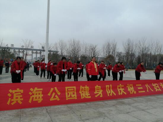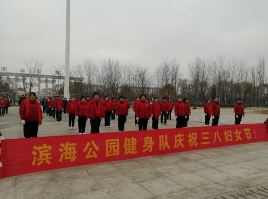 濱海公園健身隊跳起歡樂舞蹈喜慶三八節(jié)