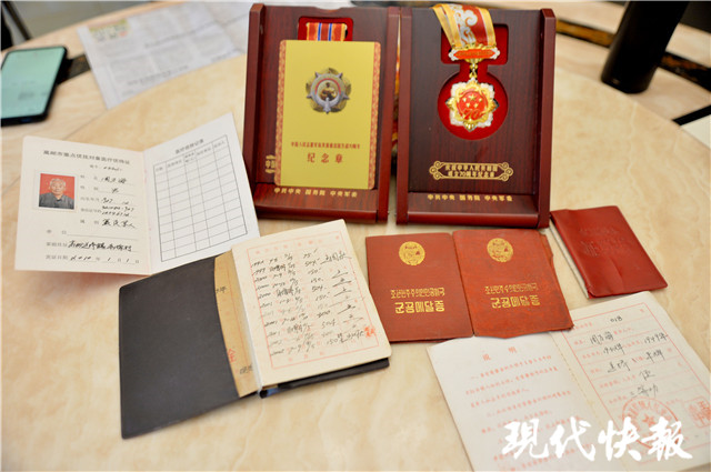 在周老家中,還保存著抗美援朝紀(jì)念章,以及朝鮮頒發(fā)的軍功獲獎(jiǎng)證。彭偉詳細(xì)記錄了周老口述的經(jīng)歷,并為紀(jì)念章、證書拍了照。
