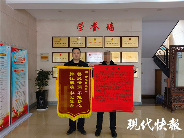 3月15日上午,丹陽市云陽街道九房村居民馬某興沖沖地來到丹陽市公安局南環(huán)路派出所,向民警蔡科平遞上一面寫有“警民情深不忘初心 排憂解難牢記使命”16個大字的錦旗,感激道;“謝謝民警同志,圓了我的心愿……”