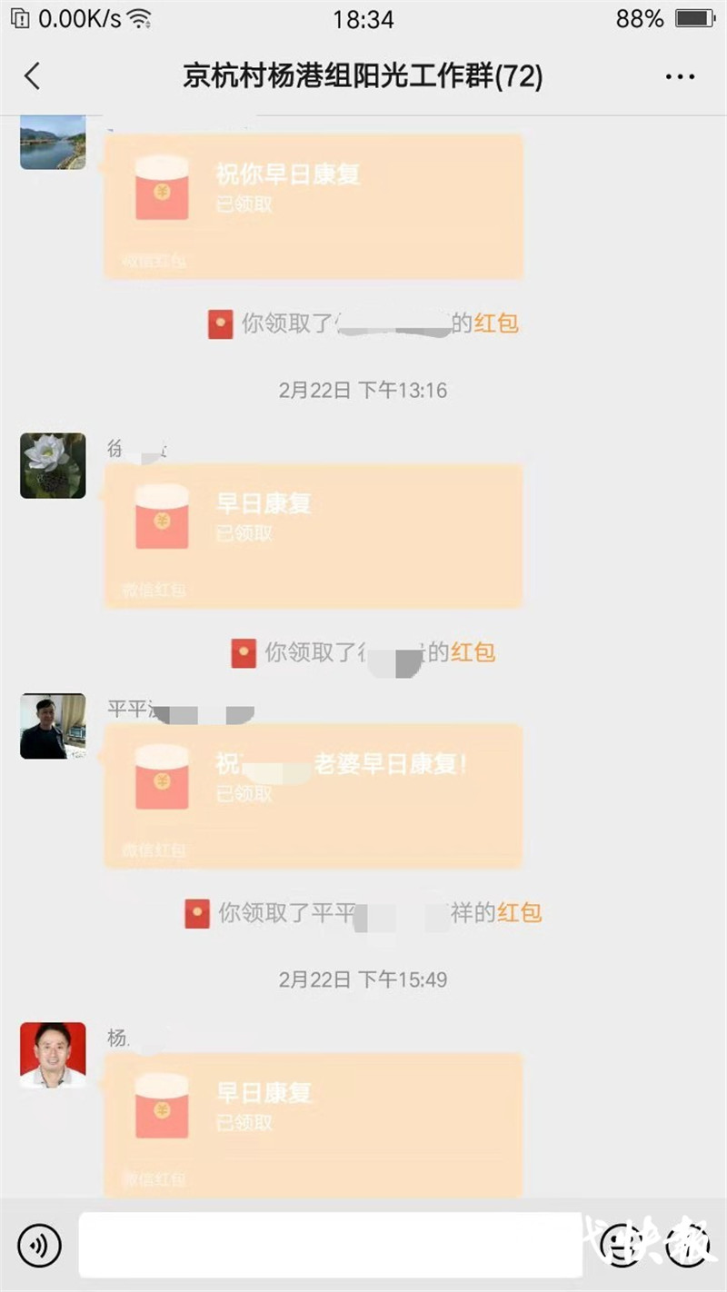 村民楊長年去年家庭遭遇重大變故,但聽聞羅國群的情況后,仍捐出500元。“京杭村楊港組陽光工作群”也成了村民們的愛心接力群,許多在外工作生活的村民也紛紛慷慨解囊,通過網(wǎng)絡(luò)積極幫助困難的鄉(xiāng)親。“這是咱村的傳統(tǒng),誰家還沒個(gè)困難的時(shí)候,鄰里之間搭把手,往往就能幫別人渡過急難。”京杭村村民高德貴說。