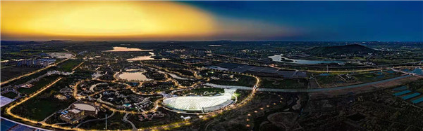 據(jù)了解,2021揚州世界園藝博覽會國際館位于園區(qū)東部,面積11000㎡,整個館高30多米,長250多米。場館在設(shè)計理念上結(jié)合了長江揚州段的保護動物江豚,喻意“江豚游弋”,因此,國際館也有了“江豚”的外號。這座“有生命、會呼吸”的綠色建筑會隨天氣、光線變幻色彩點亮世園會,在開園期間將承擔(dān)國際花卉展示、花卉園藝競賽、配套服務(wù)區(qū)等功能。(張卓君 攝)