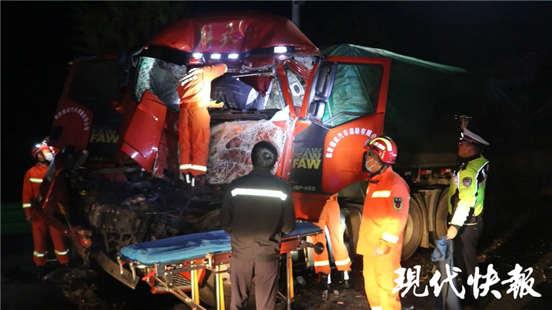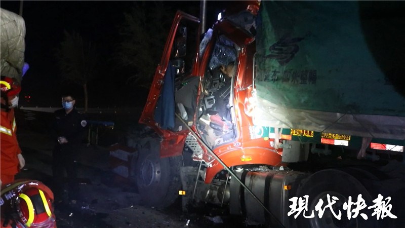 當(dāng)天清晨4點(diǎn)32分,徐州睢寧縣慶安鎮(zhèn)251省道馬莊橋附近發(fā)生兩半掛車追尾事故,后車司機(jī)被卡車內(nèi)無(wú)法出來(lái)。接到報(bào)警后,睢河消防救援站出動(dòng)1車6人趕赴現(xiàn)場(chǎng)。
