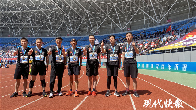 現(xiàn)代快報(bào)記者注意到,在半程馬拉松比賽的終點(diǎn),7名剛剛完成比賽的外地跑友異常興奮。面對鏡頭,他們一起用山東話、云南話、安徽話、蘇北話等不同的口音,共同喊出一句:“鹽馬加油、上海公安加油、農(nóng)場公安加油!”